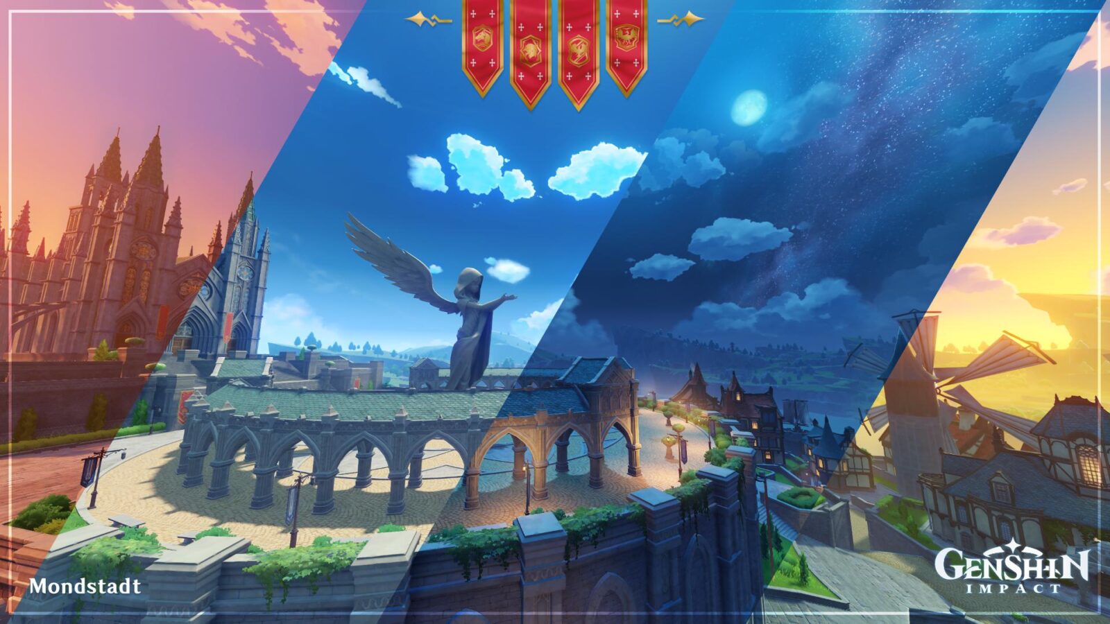 Mondstadt jest pierwszym regionem, w którym gracz rozpoczyna swoją podróż. Widoczne są w nim zaczerpnięcia z architektury Niemieckiej oraz Szwajcarskiej. Główną inspiracją dla Mondstadtu najprawdopodobniej było Berno, stolica Szwajcarii, a sama nazwa tłumaczona z języka niemieckiego oznacza ”Moon City”.