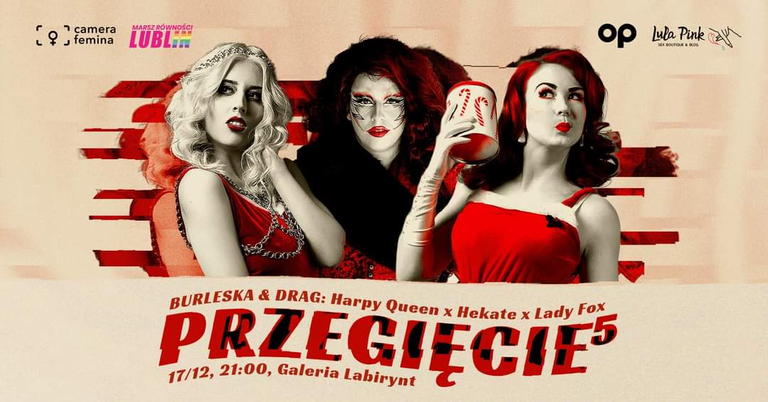 Ostatnia sobota okazała się niezwykłą gratką dla fanów burleski i dragu. W Galerii Labirynt odbyła się kolejna edycja Przegięcia – show które łączy obie te rzeczy. To nowy format na lubelskiej scenie, prezentujący różne formy sztuki feministyczno-queerowej. O świąteczny klimat zadbały trzy performerki, na scenie nie zabrakło także prezentów.