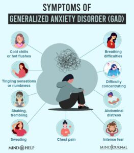 Lęk powstaje bez istotnej przyczyny i ma charakter nawracający, osobie zmagającej się z tym zaburzeniem trudno opanować obawy które powracają nawet kilkanaście razy dziennie. Podczas przebiegu choroby towarzyszy jej uczucie napięcia, trudności w koncentracji, drażliwość, zmęczenie i niemożność odprężenia się. Wszystkie te objawy z czasem doprowadzają do wycofania się chorego z życia społecznego i rozwoju innych problemów zdrowia psychicznego.