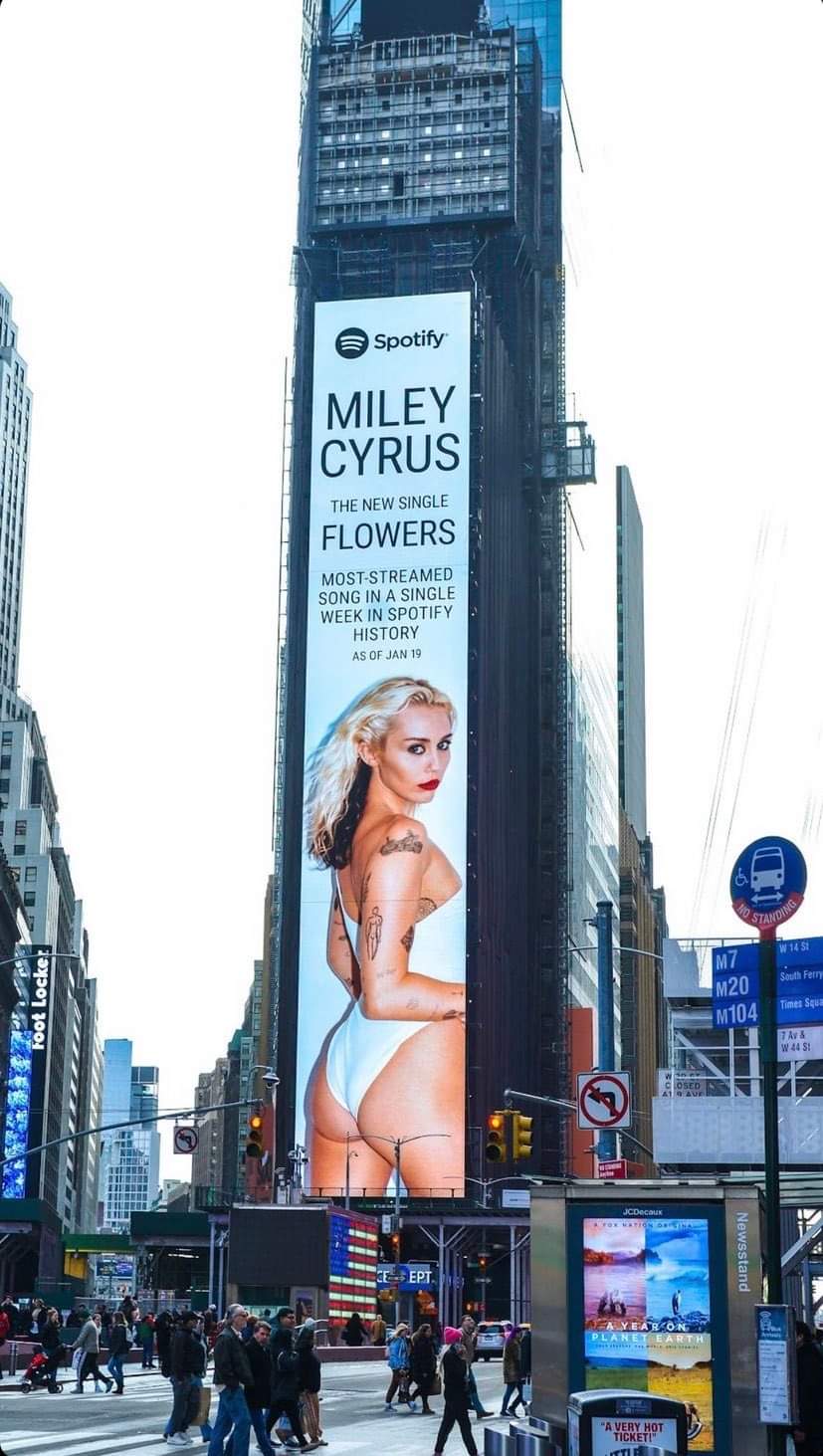 „The most streamed song in one week in the history of Spotify” – New billboard promoting the song „Flowers” in Times Square in NYC!