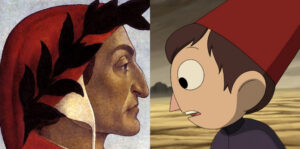 Wirt, kluczowa postać w kreskówce, przypomina samego Dantego – nie tylko przez cechy charakteru, ale też wygląd. Do twórczości autora nawiązuje także towarzyszka braci, ptak o imieniu Beatrice. Beatrice, w wersji spolszczonej Beatrycze, to miłość Dantego i bohaterka „Boskiej komedii”, której autor powierzył rolę przewodniczki po niebiańskiej krainie.
