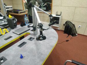 J: To zależy od pasma. Poranne pasmo zaczynamy o godzinie 7:00, ale wiadomo, trzeba przyjść wcześniej, sprawdzić playlistę jaka jest, przygotować się do wejść. Mamy 3 godziny powiedzmy, tego pasma. Trzy godziny dzielimy na pojedyncze godziny i w ciągu godziny musimy albo zrobić wejście, albo są jakieś programy w ramach. Na przykład o godzinie 8:15 jest poranna rozmowa. To musimy realizować, nie mam na to żadnego wpływu, ja nie prowadzę rozmowy. Tym się zajmują osoby z innego działu, zwykle z działu informacyjnego. Moim zadaniem jest po prostu realizacja. A tak poza tym to wykonuje różne wejścia. Co 10 minut musimy się odezwać, powiedzieć coś inteligentnego w miarę, może coś ciekawego. W celu by słuchacz po prostu został z nami. Tak zwykle wyglada poranek, a po południu to samo, z tą różnicą, że masz więcej wejść, a mniej programów.