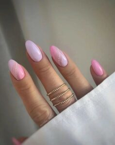 2. Dodaj akcent do pastelowego manicure, dodając wyrafinowane białe kropki do paznokci akcentujących: