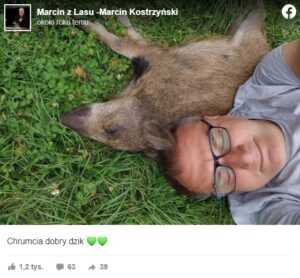Marcin Kostrzyński to były myśliwy, który porzucił strzelbę na rzecz kamery i aparatu fotograficznego. Stał się obrońcą, obserwatorem i niekwestionowanym miłośnikiem natury. Autor książek o tematyce przyrodniczej, stworzył również kanał na YouTube, pod nazwą „Marcin z Lasu”. Wśród wielu filmów znalazł się także ten o dzikach, które jak twierdzi: „wcale nie są dzikie, nie są złe”. Z jego obserwacji wynika, że z powodu polowań wiele z tych zwierząt zostaje pozbawione stada, w którym żyje. Samotne, młode dziki przychodzą do chaty leśnika, który staje się ich zastępczą mamą i spaceruje z nimi po lesie. Obrońca zwierząt zaznacza, że nie jest to normalne zachowanie i apeluje: